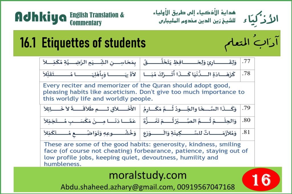 The following are the proper manners of the reciter of the Quran. Here, a reciter of the Quran refers to a student of knowledge or one who is on the path of seeking knowledge and Allah’s satisfaction.