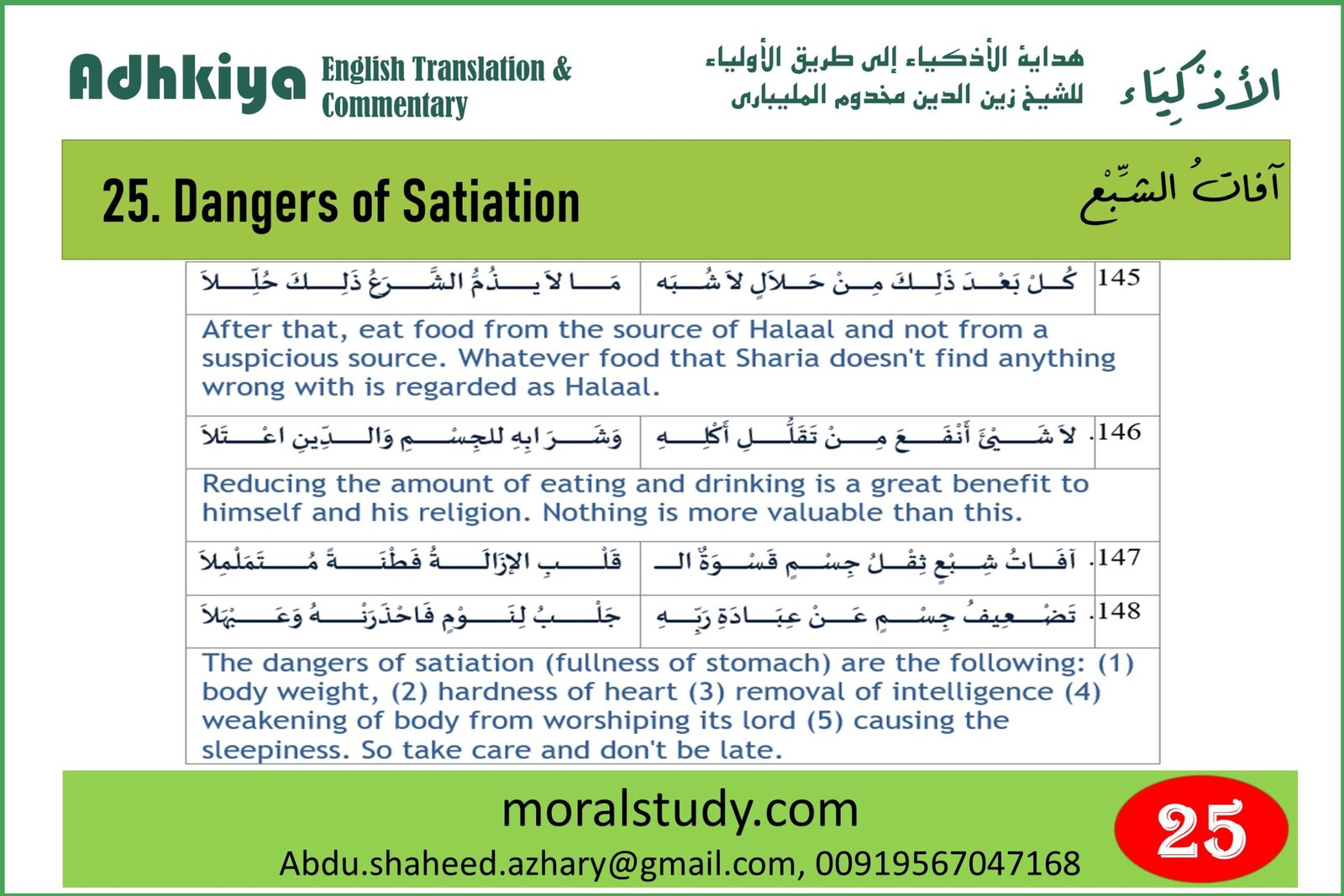 ‘A human being fills no worse vessel than his stomach. It is sufficient for a human being to eat a few mouthfuls to keep his spine straight. But if he must (fill it), then one third of food, one third for drink and one third for air.’”