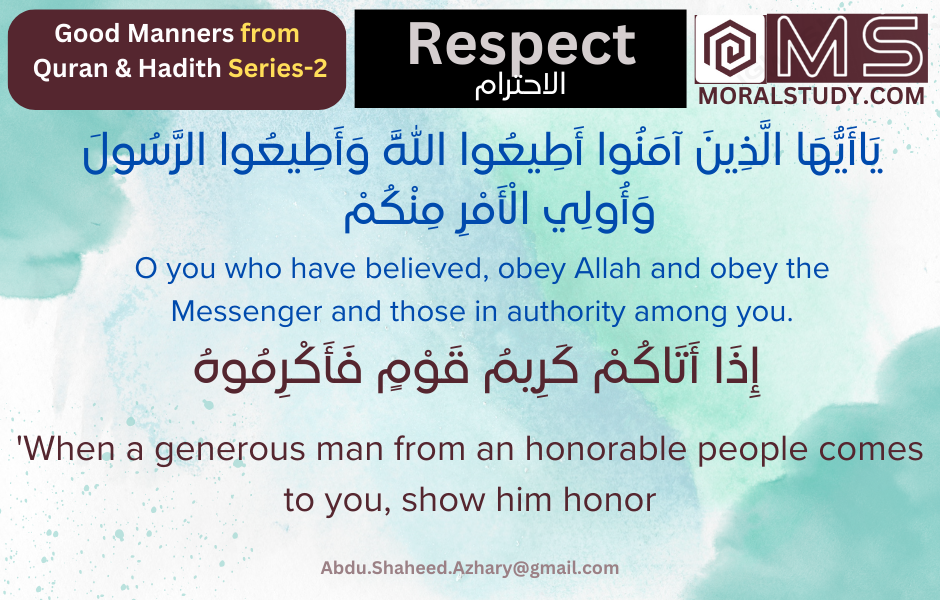 - Compliance with religious teachings: Respect represents compliance with the teachings of the Sharia