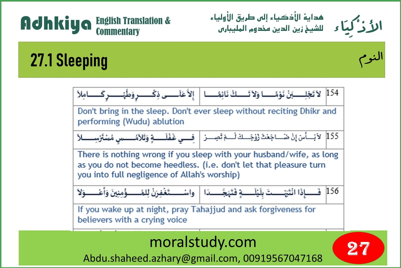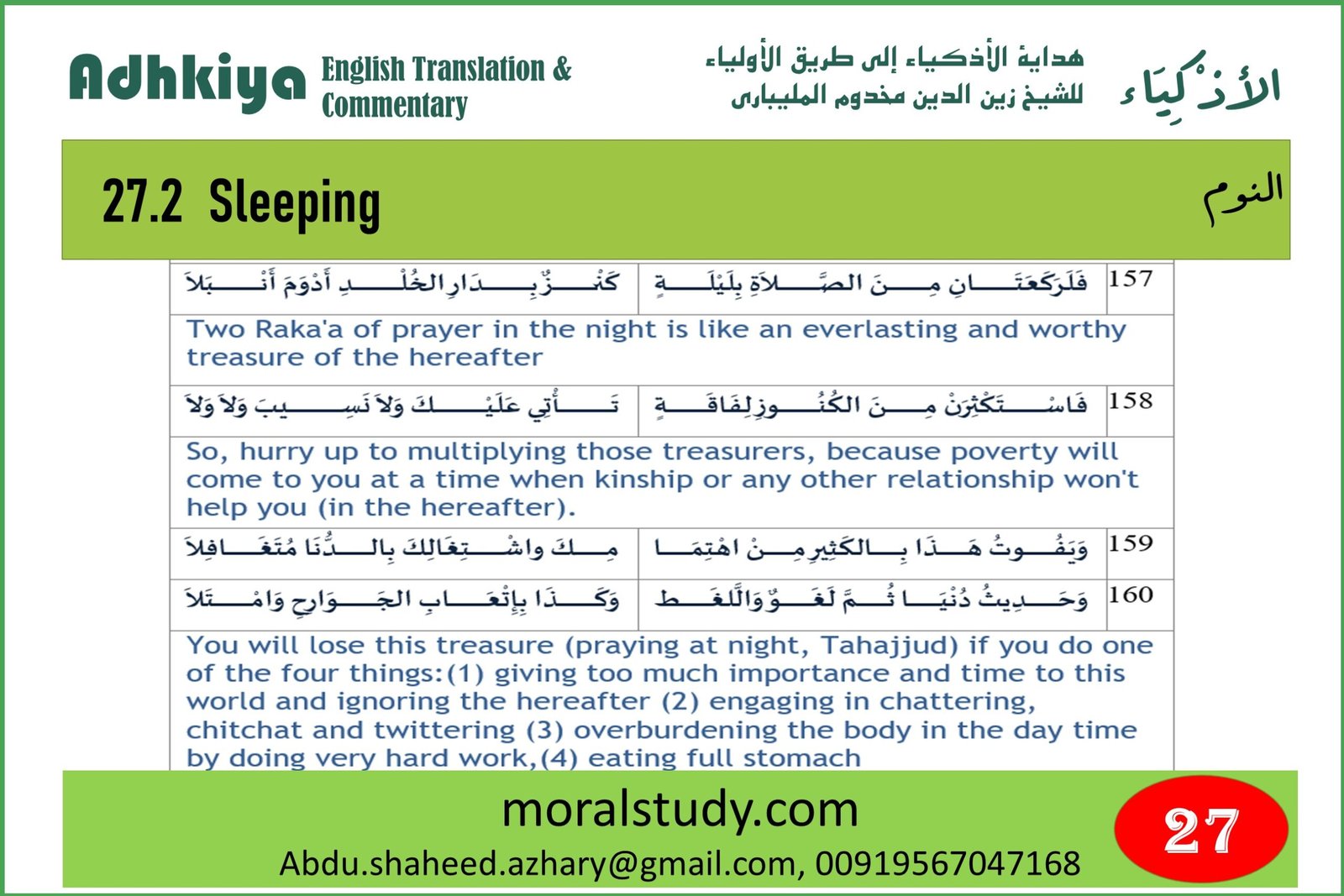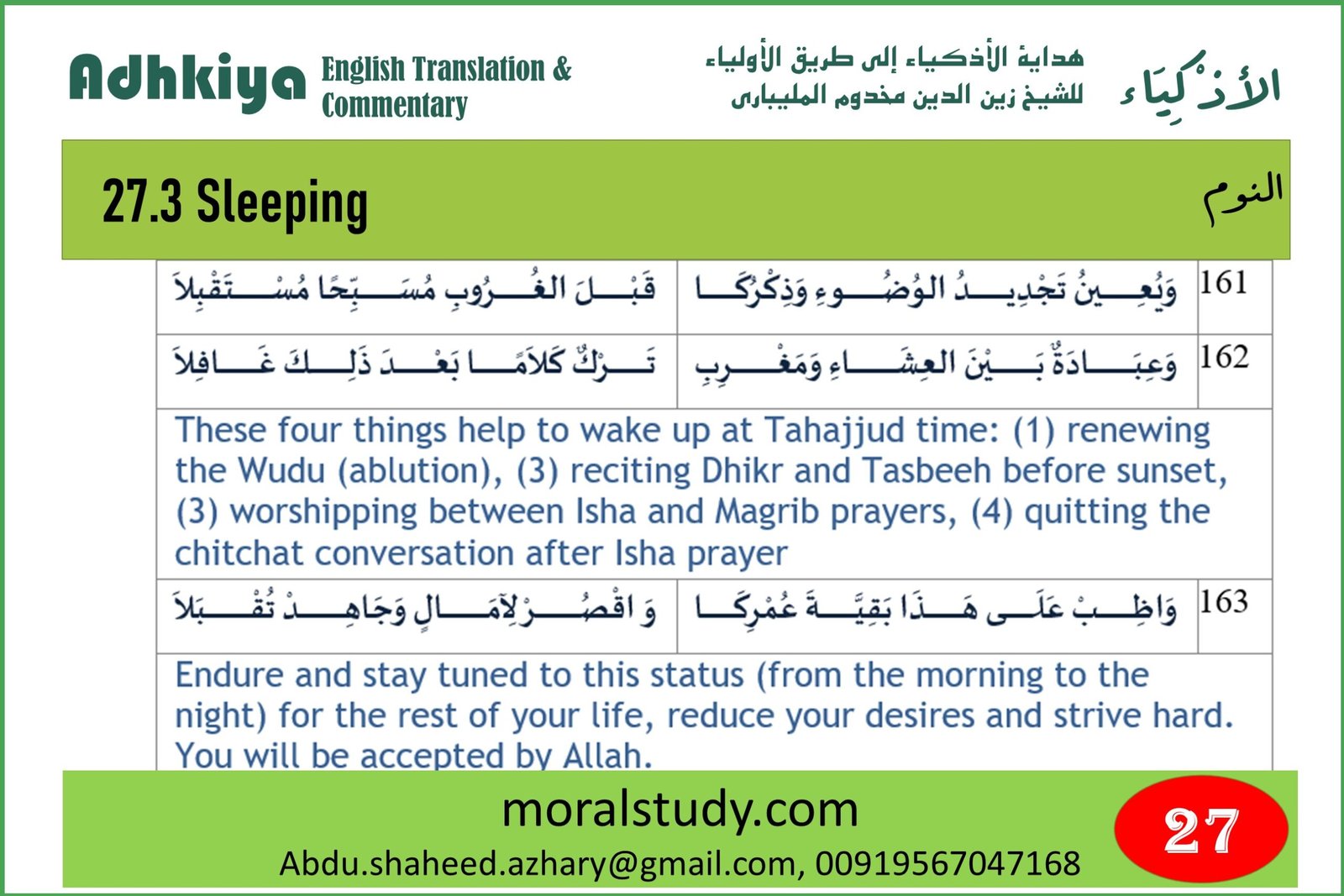 The author advised students to start the day by waking up early in the morning and praying the Fajr prayer. Then he guided what one has to do step by step. Finally, the author says what one needs to do before going to bed and after sleeping.